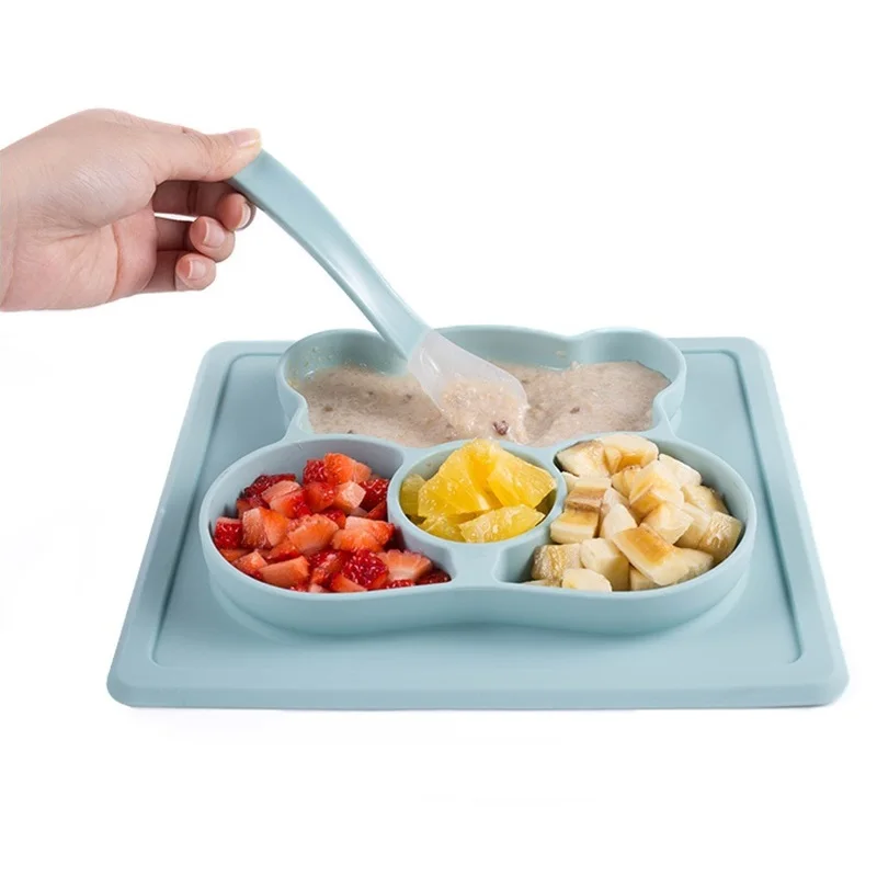 HIGH QUALITY Cartoon Infant Silicone Tray Integrated Non-slip Baby Food Supplement Plate With Packaging And Spoo