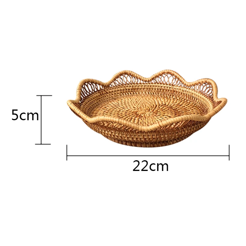Handmade Wicker Woven Storage Basket8.6 X 2 Inch Restaurant Bread Basket Fruit Vegetables Food Serv