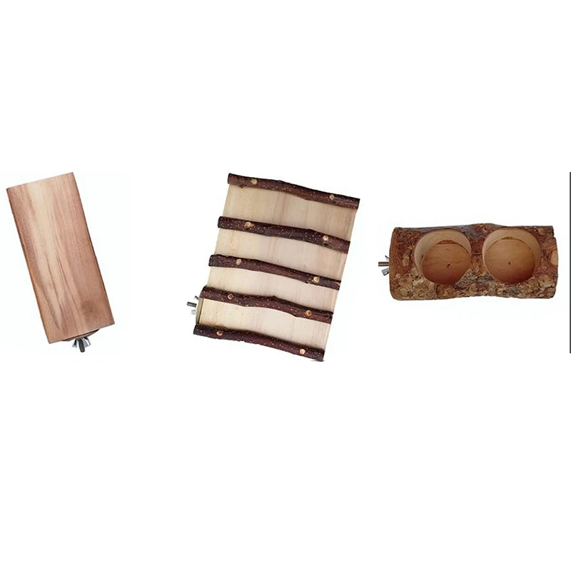 3Pcs/Set Hamster Wooden Set Climbing Frame Platform Food Bowl Molars Supplies For Chinchillas Hedge