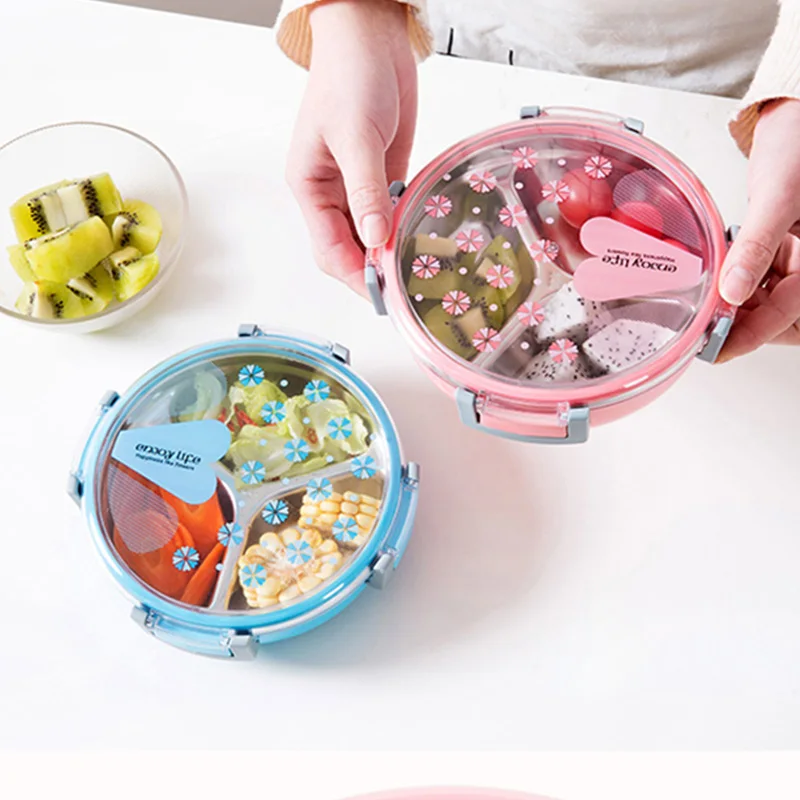 Food Container Portable Lunch Box School Picnic Food Fruit 3 Grids Container Storage Box Healthy Pl