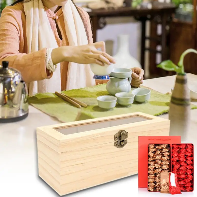 Natural Wooden Tea Caddies Tea Bag Jewelry Organizer Chest Storage Boxes 3/6 Compartments Tea Boxes