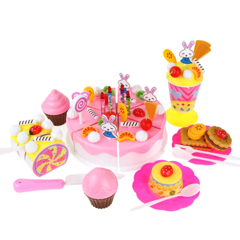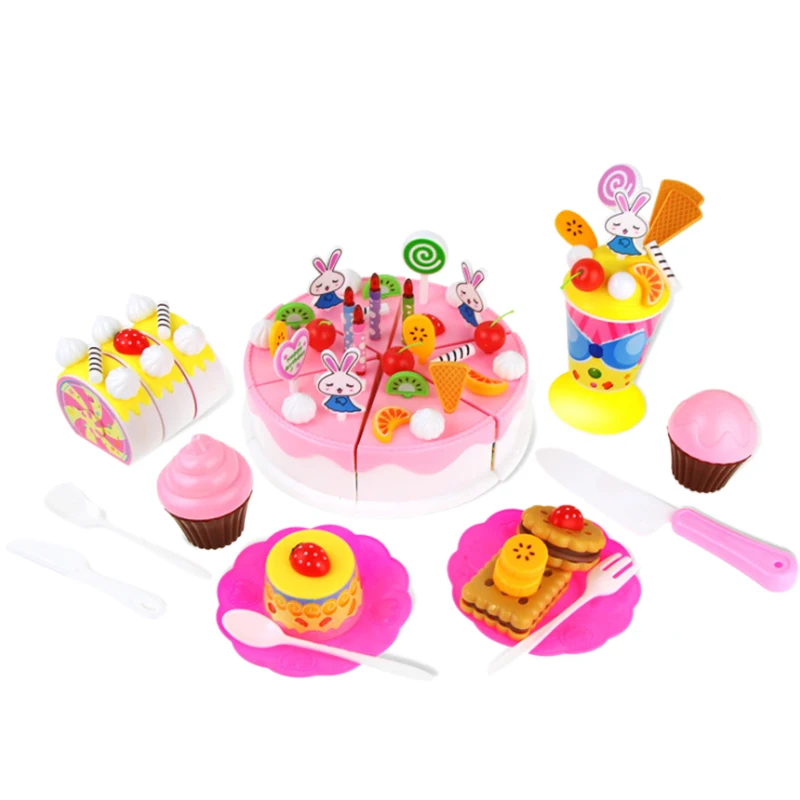Pretend Play Food for Kids 70 Pcs Cutting Birthday Party Cake Toys Set with Candles Fruit DessertKi