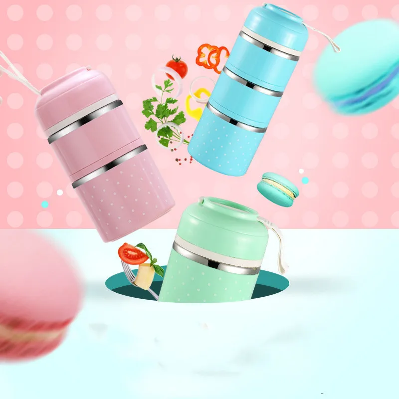 The 3 Cute Japanese Bowl Stainless Steel Thermal Leak - Proof Portable Bento Box Kids Picnic Food C