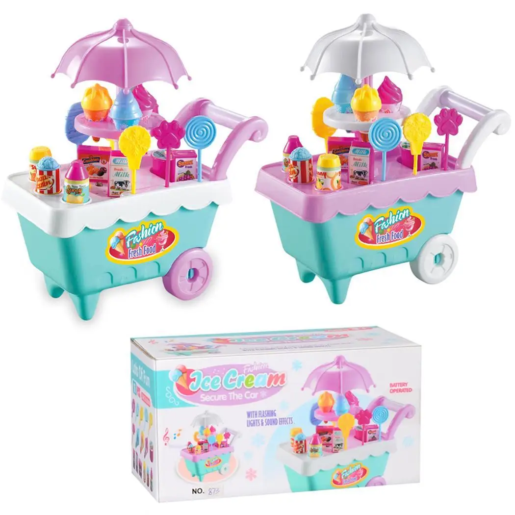 HOT SALE 19Pcs Kids Rotating Ice Cream Candy Pretend Play Food Develop Intelligence Supermarket Trolley Toys