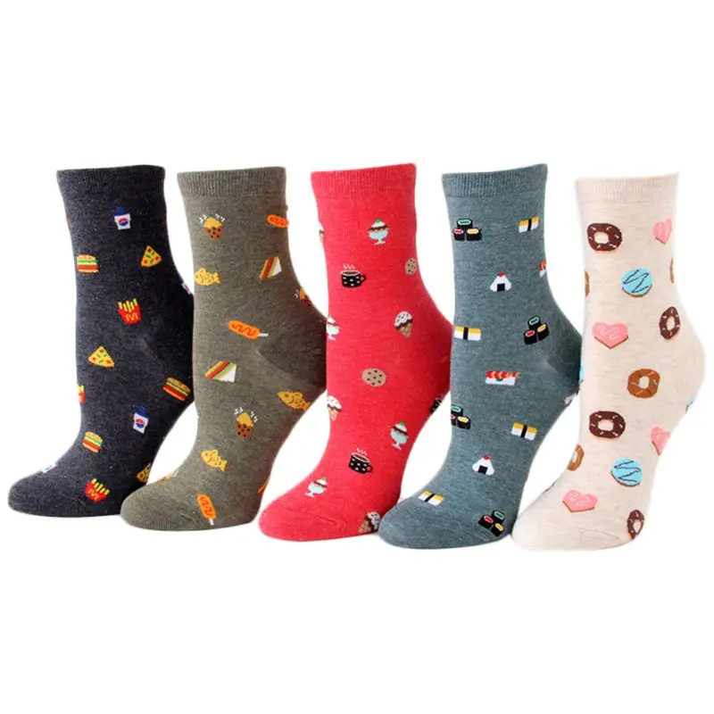 5 Pair Women Harajuku Cotton Crew Socks Cake Sushi Sandwich Cartoon Food Hosiery AXYD