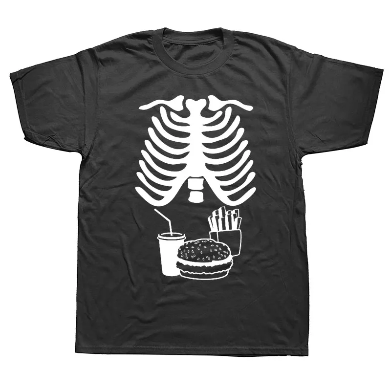TOP Funny Fast Food Skeleton Baby Announcement Dad To Be T Shirts Men Summer Cotton Harajuku O Neck Str